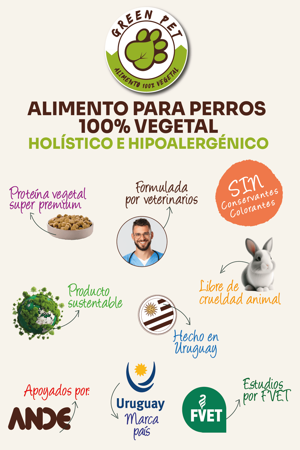 - Los alimentos para perros 100 % vegetales, como los de Green Pet, emplean hasta un 85 % menos de emisiones de efecto invernadero que las dietas tradicionales basadas en carne.